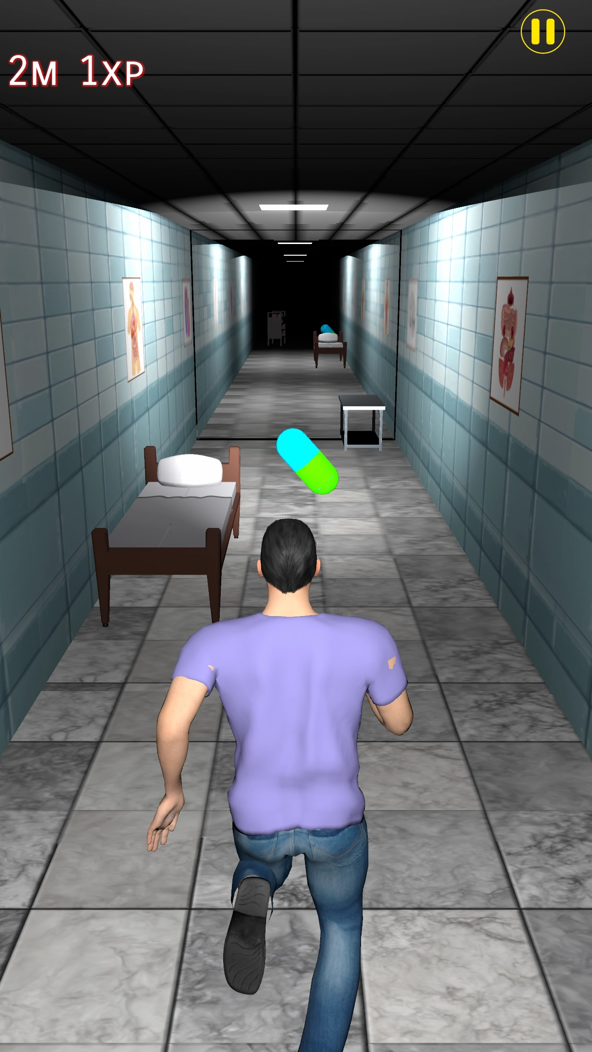 Run as far as possible. Avoid obstracles & avoid getting caught by bad doctor.